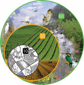 (10% урбо ландшафты, 30% сельскохозяйственные территории, 60% естественные экосистемы)